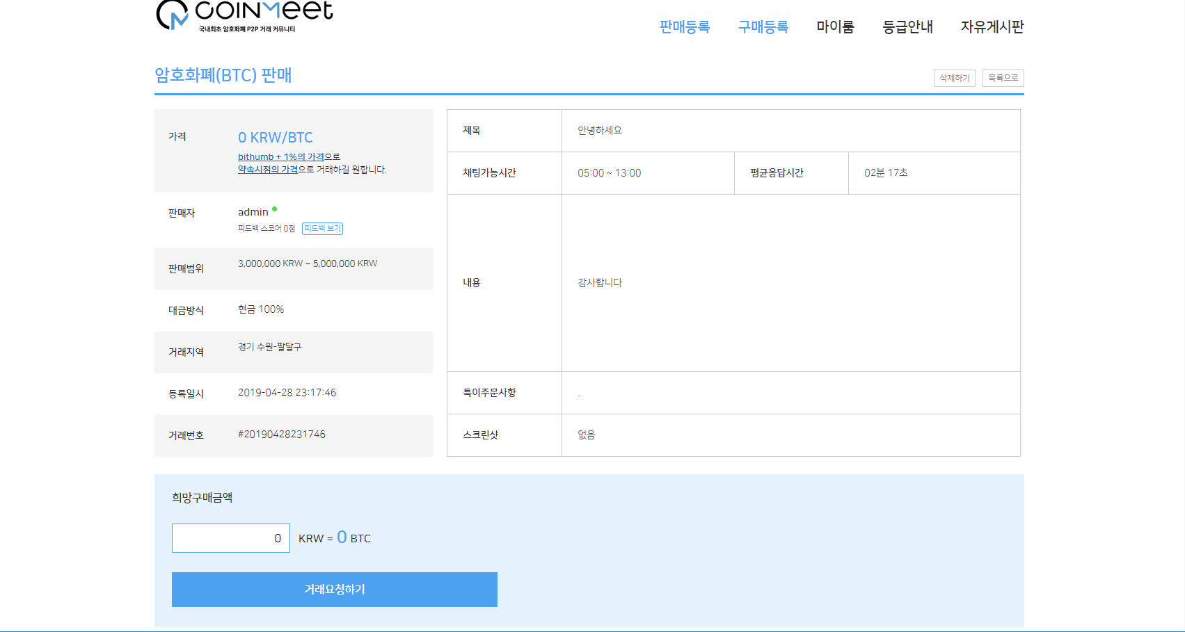 구매페이지 입니다.(판매 페이지도 양식은 동일합니다.