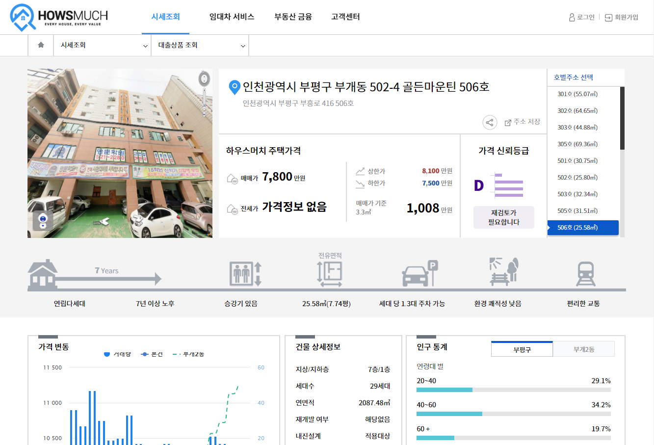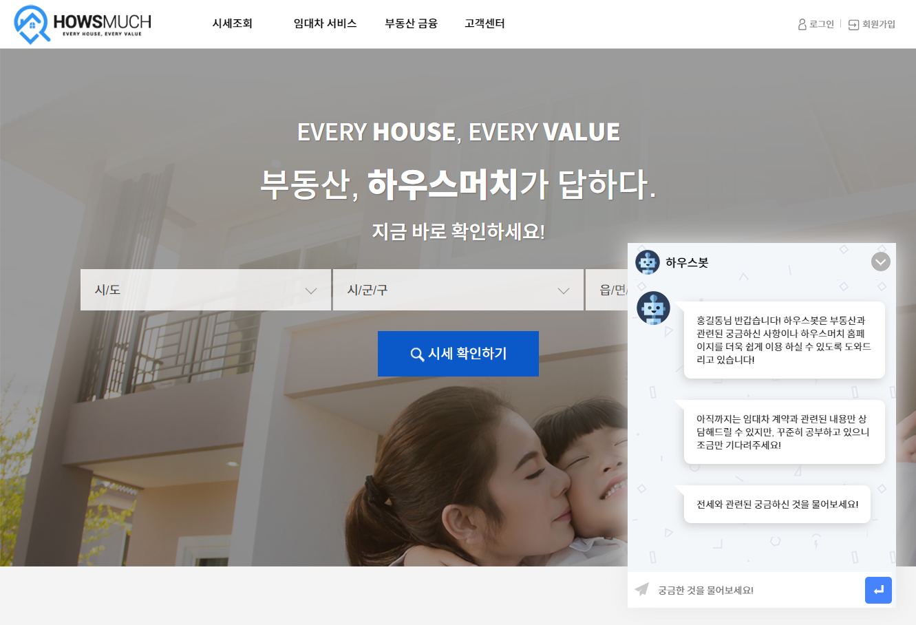 하우스봇 이라는 챗봇이 있고, 시도 시군구 읍면동 별 시세를 확인할 수 있는 페이지 입니다.