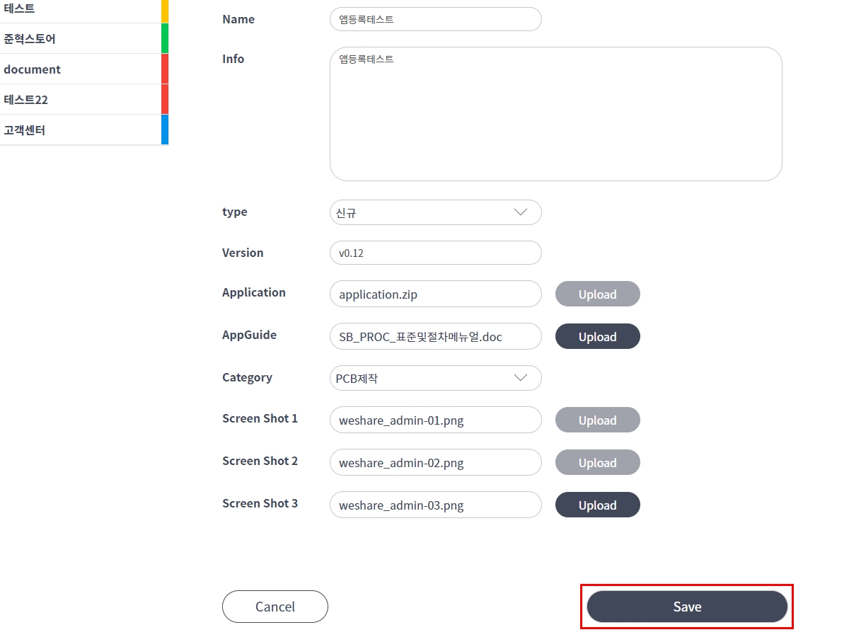 해당 페이지는 유저가 앱을 등록하는 페이지입니다.